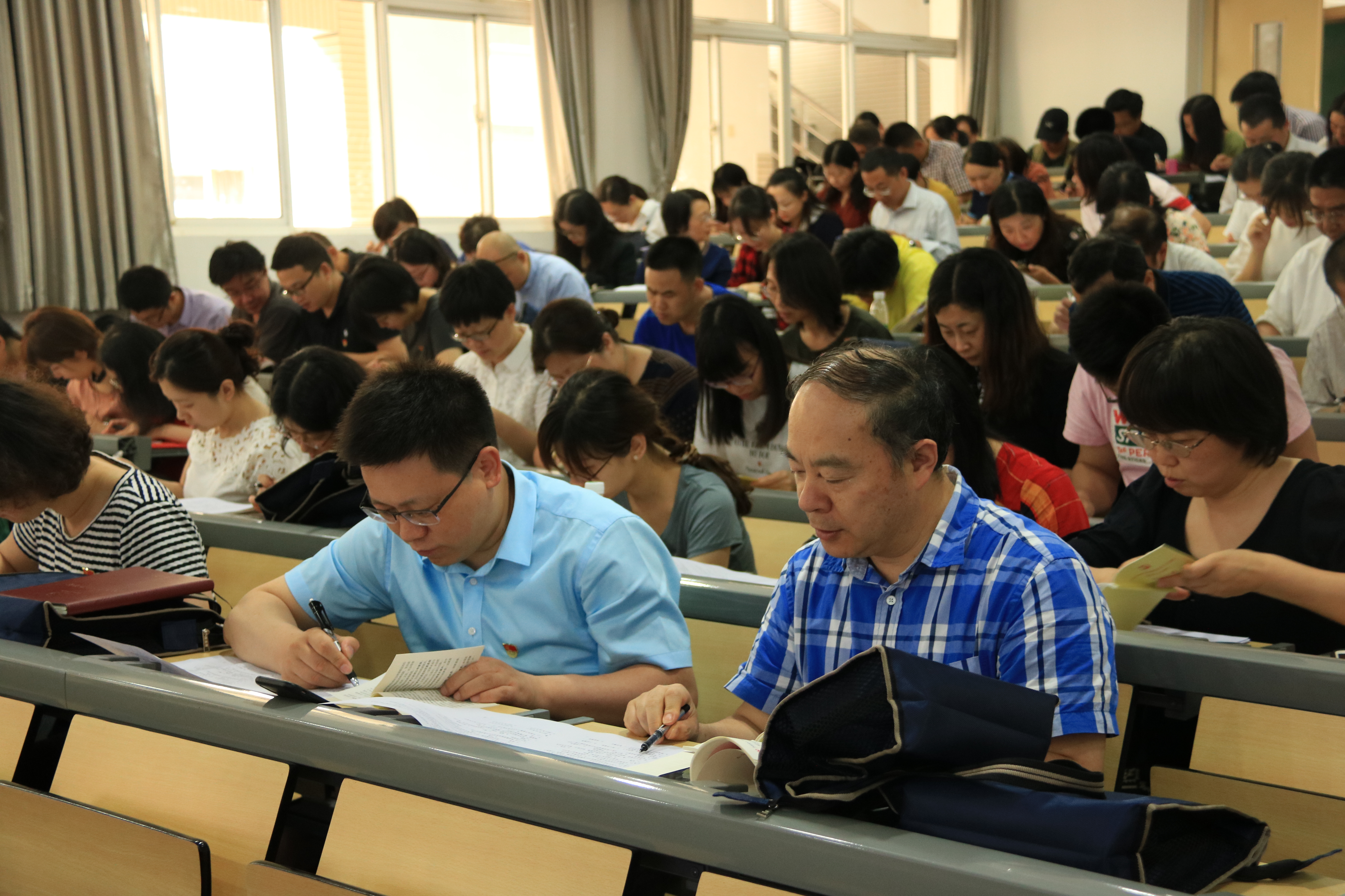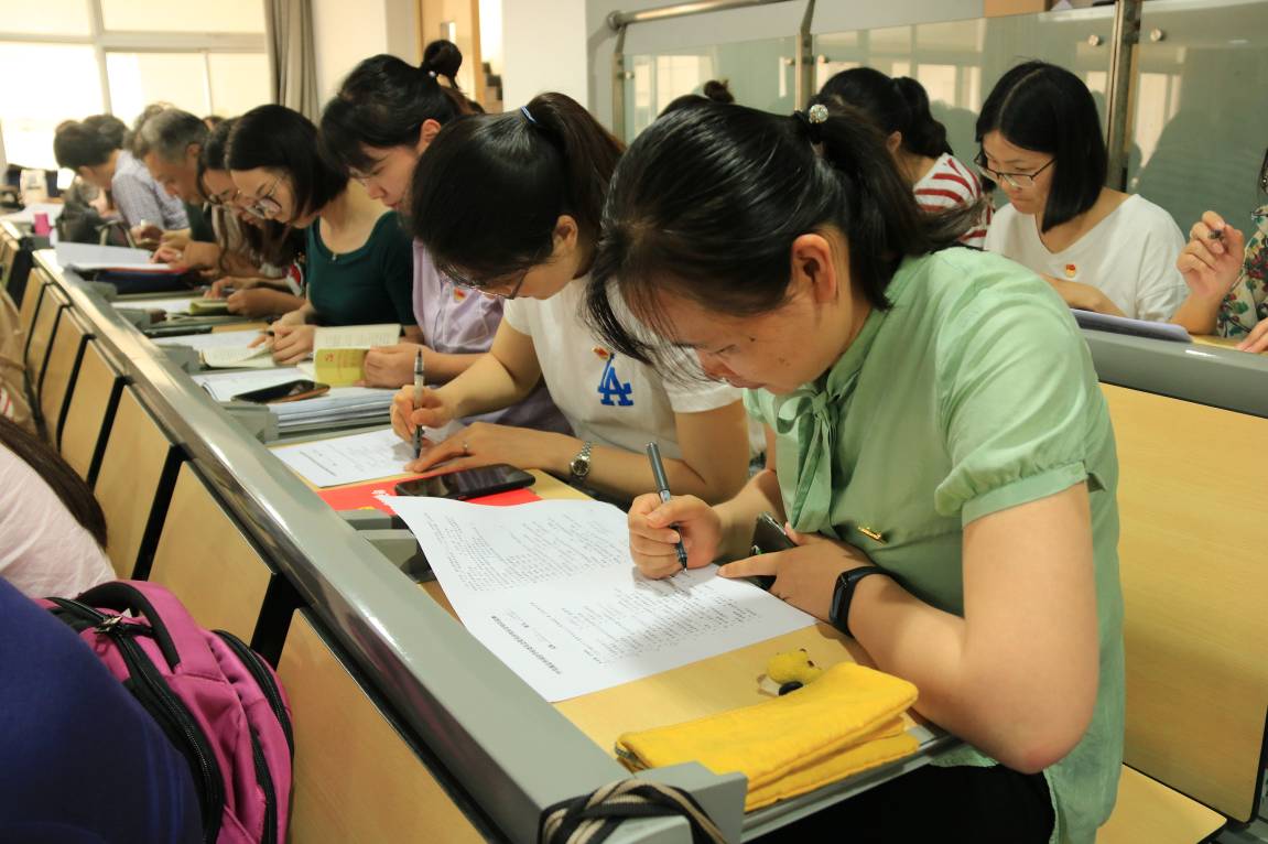 党课结束后,为深入学习习近平新时代中国特色社会主义思想和党的十九大精神,推动金沙官网党员在强读强记、常学常新中切实掌握应知应会基本知识,树牢“四个意识”、坚定“四个自信”、坚决做到“两个维护”,校党委组织全体党员开展应知应会知识竞赛活动。本次竞赛采用书面答题的形式,题型为单项选择题、多项选择题、判断题和简答题四种,满分100分,全体党员积极思索、认真答题。