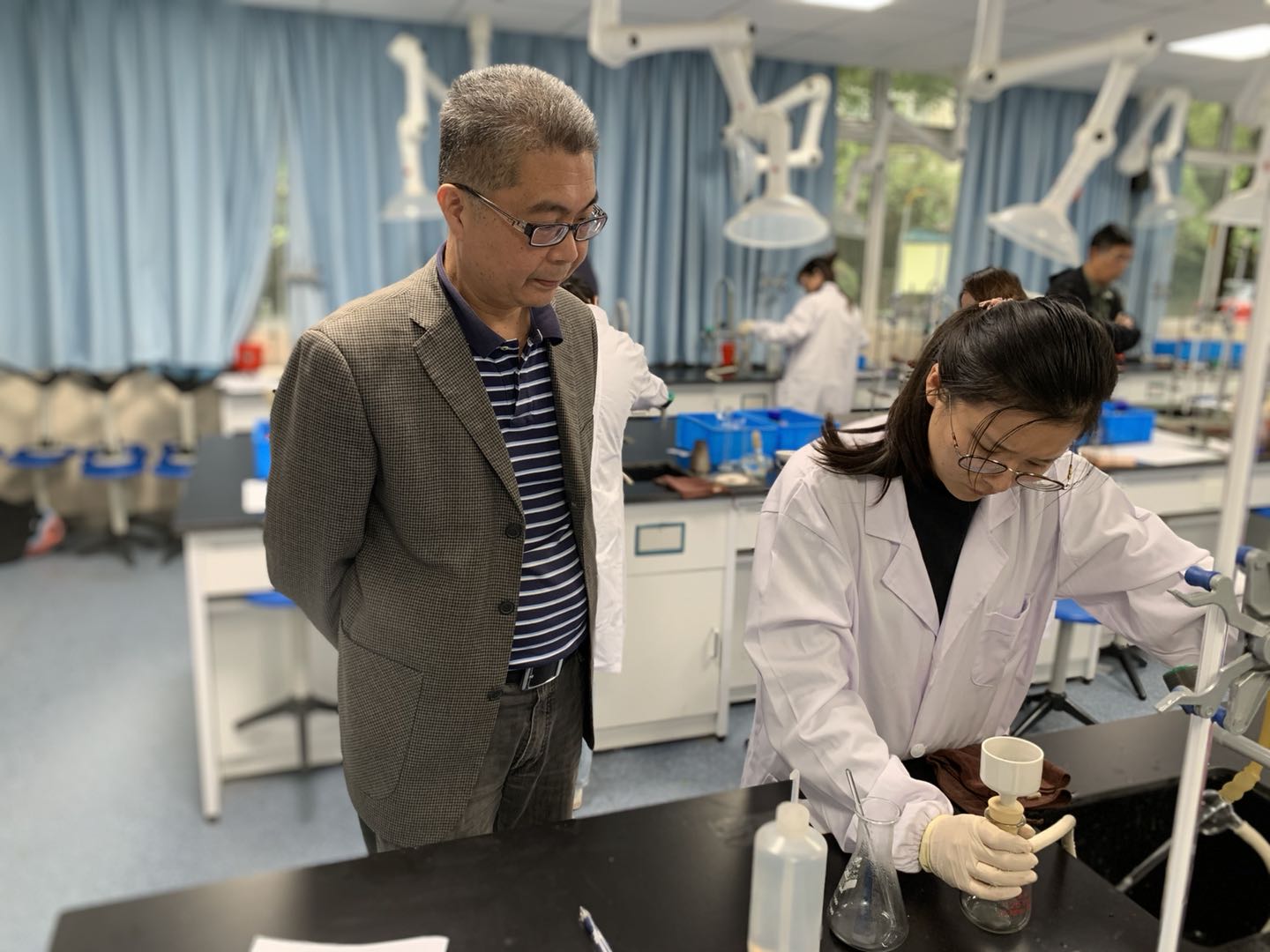2020年10月20日下午,南京市高中化学实验教学技能比赛在南外成功举办。本次比赛由南京市教育技术装备中心主办,陈懿名师工作室承办。来自直属学校和南京市各区共51名参赛选手参加了理论考试和实验操作考试。省装备中心王敬科长、市装备中心邓中材主任、孙宏根副主任现场巡视比赛情况。
