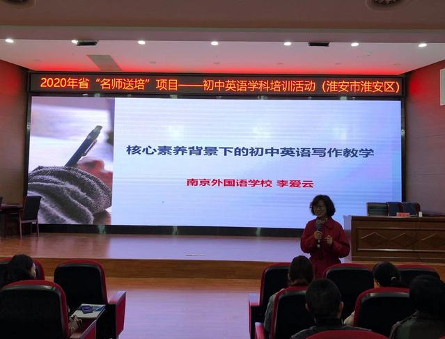2020年11月19日至21日,受江苏省教育厅、淮安市教师发展学院、南京市教师培训中心委托,金沙官网“李爱云名师工作室”一行4人,赴淮安开展江苏省教育厅2020年“名师送培”(淮安)活动。本次活动的主题为“初中英语教学策略及学生思维品质的培养”。