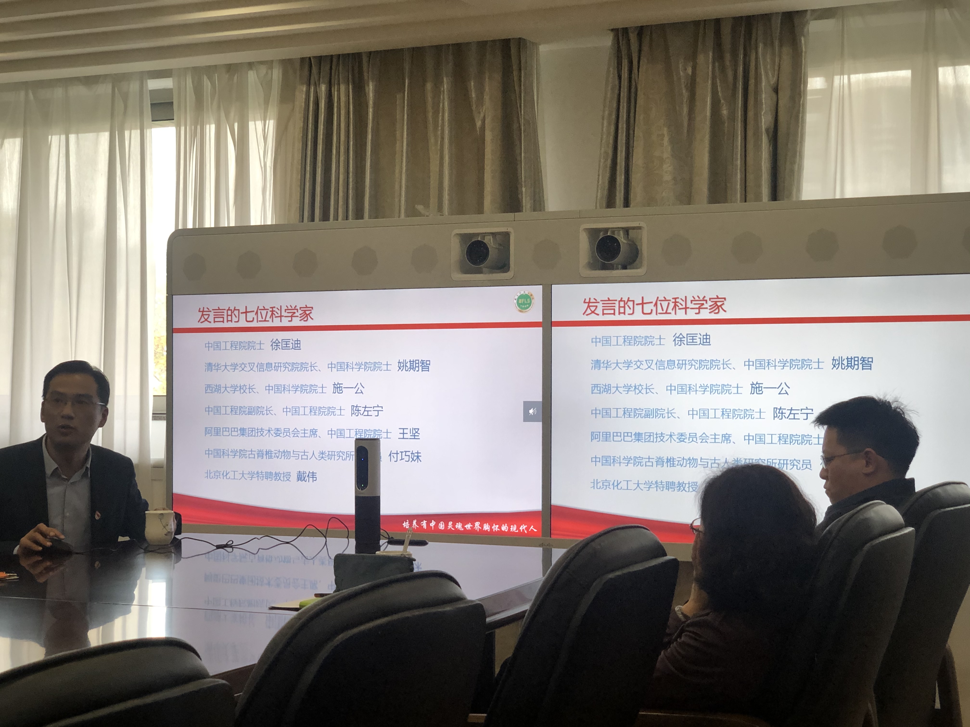 2020年10月26日,金沙官网党委中心组专题学习研讨习近平总书记在科学家座谈会上的重要讲话。党委书记刘前树主持学习,校党委委员、中层以上人员全体参加。