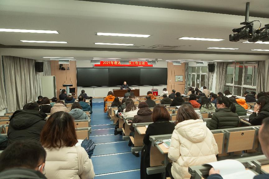 1月5日下午,金沙集团1862cc2021年度述职评议工作会议在E二楼阶梯教室召开。会议由校党委书记刘前树主持,校行政、党委领导班子成员、教职工代表出席。